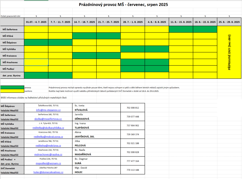 Prázdninový provoz 2025